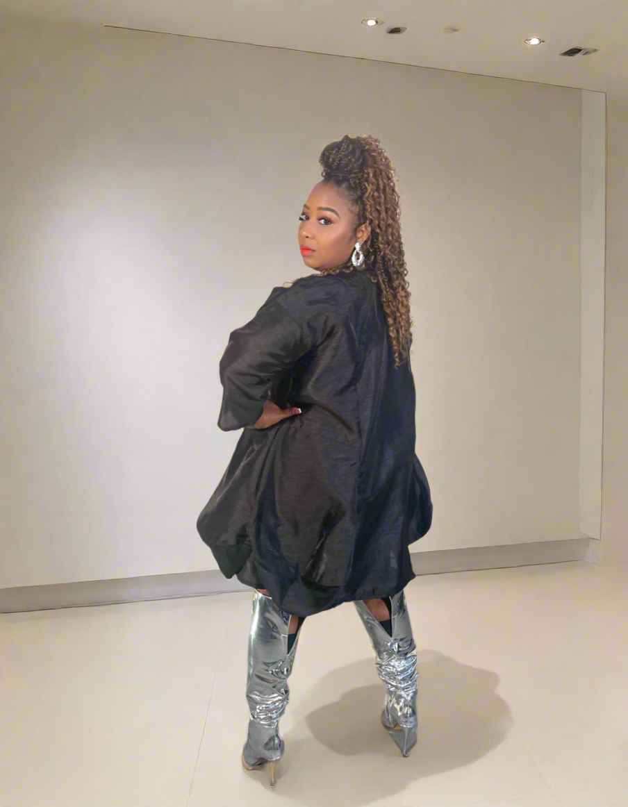 Effortlessly chic, the Balloon Dress in Black elevates any wardrobe. Crafted from a luxurious blend of silk and cotton, it features a button down front and convenient pockets. Make a statement and embrace both style and comfort with this must-have piece.